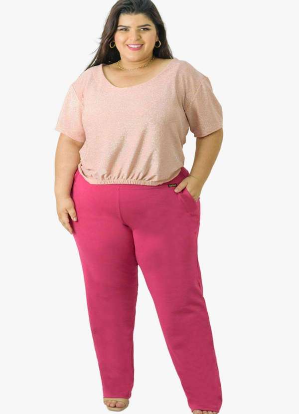 Looks Catwalk - Calça Reta Feminina Estilo Social Cintura Média Plus Size - Pink