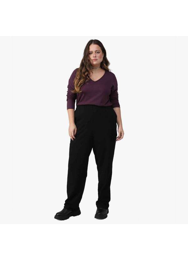 Basicamente - Calça Reta Moletom Flanelado Comfort Plus Feminina Preto