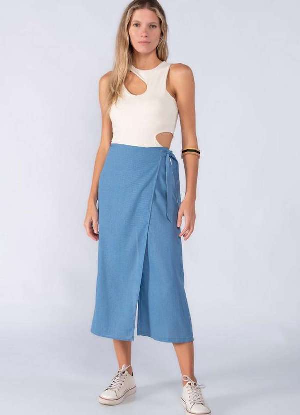 Lamis - Calca Saia em Linho Pantacourt Faixa Azul