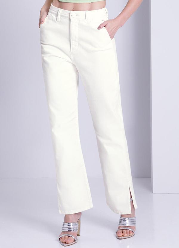 Lunender - Calça Sarja Reta Cropped Chapa Barriga Bege