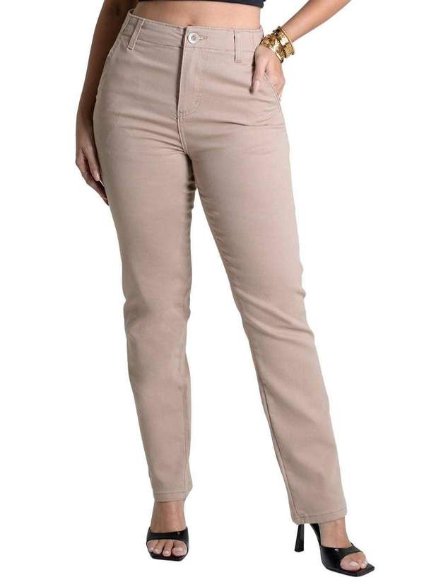 Calça sarja feminina de modelagem reta, com caimento mais solto ao corpo. Cintura alta Fechamento com botão e zíper Bolsos frontais e bolsos traseiros Barra com acabamento simples Tecido: Sarja Tipo de lavagem: Color Cor: areiaComposição: 73% ALGODÃO 24% POLIÉSTER 3% ELASTANO