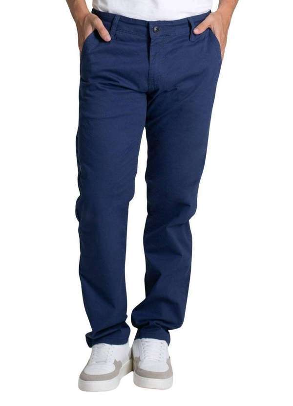 Calça skinny confeccionada em sarja. Modelagem ajustada até a barra. Cintura média Fechamento com botão metálico e zíper Bolsos frontais e bolsos traseiros funcionais Barra simples Modelagem: Men skinnyTecido: Sarja Tipo de lavagem: color Cor: azulComposição: 98% ALGODÃO 02% ELASTANO