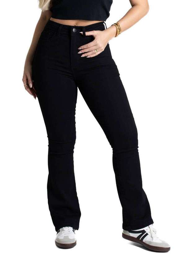 Calça super lipo boot cut preta confeccionada em sarja. A modelagem boot cut tem caimento ajustado e levemente amplo na barra. A modelagem super lipo possui uma cinta modeladora interna proporcionando ajuste perfeito para seu corpo. Cintura alta Fechamento com botão metálico e zíper Bolsos frontais falsos e bolsos traseiros funcionais Barra simples Modelagem: Super lipo boot cut Tecido: Sarja Tipo de lavagem: Color Cor: PretoComposição: 73% ALGODÃO 24% POLIÉSTER 3% ELASTANO