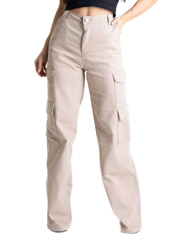 Calça feminina confeccionada em sarja. O modelo possui cintura super alta, gancho no lugar e caimento amplo da coxa até a barra. Cintura alta Fechamento através de um botão e zíper Bolsos frontais e posteriores funcionais bolsos laterais cargo Barra simples Tecido: Sarja Tipo de Lavagem: Color Cor: AreiaComposição: 73% ALGODÃO 24% POLIÉSTER 3% ELASTANO