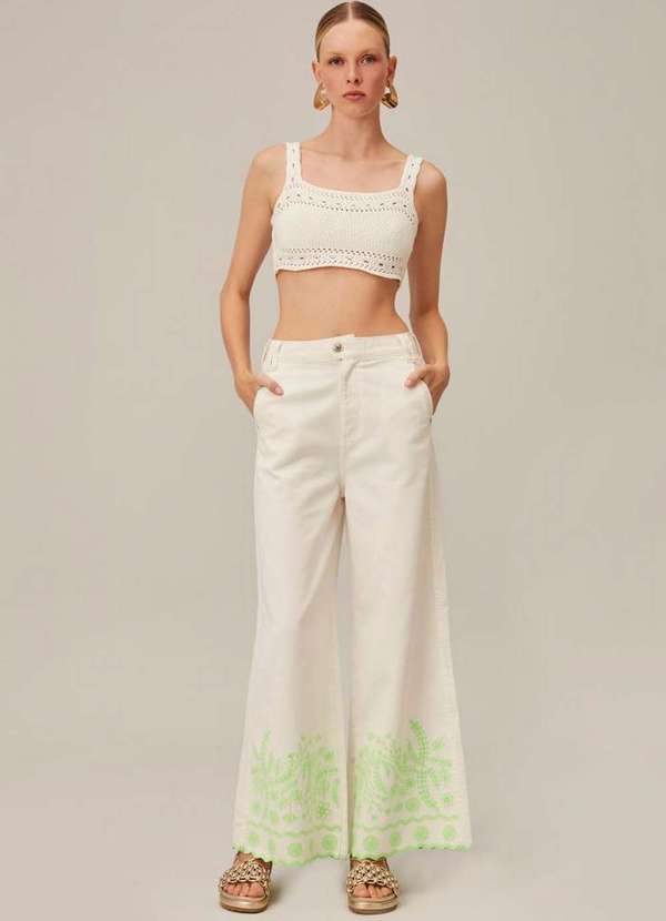 Lança Perfume - Calça Sarja Wide Leg High Bordada 00079
