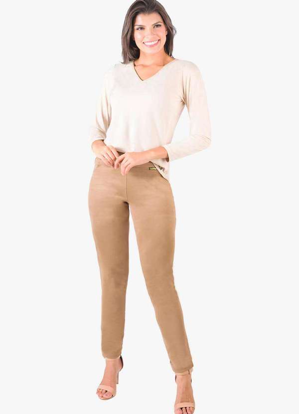 Looks Catwalk - Calça Skinny Feminina Bolso Moda Outono Inverno Quentinha - Castor
