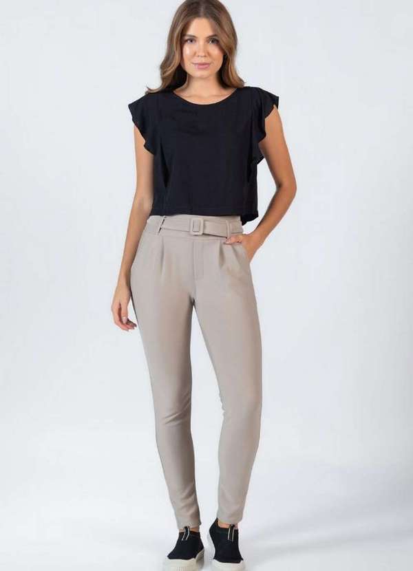 Calça legging com cinto. A peça contém cós alto com cinto, bolsos faca e detalhes de pregas frontais. Dica: Use com blusas oversized ou camisas para um look casual-chic. Nos pés, botas de cano curto ou tênis são um ótima opção. Composição: 90% Poliéster | 10% Elastano. Modelo usa: Tamanho P - Medidas 1,75 de altura | 62kg.