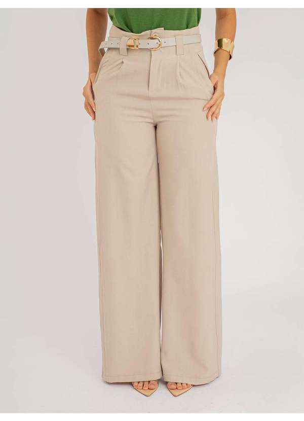 Susie Modas - Calça Susie Pantalona com Cinto Feminina Bege