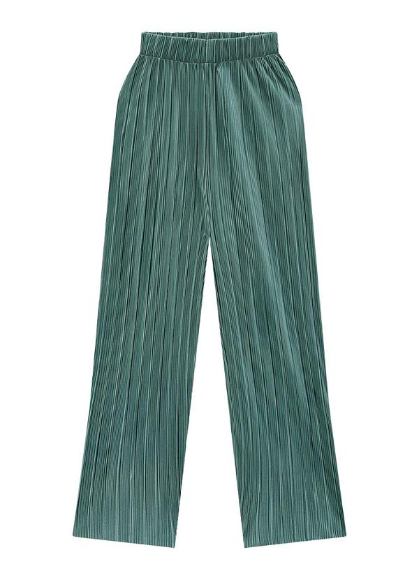 Enfim - Calça Verde Esmeralda Reta Acetinada Plissada