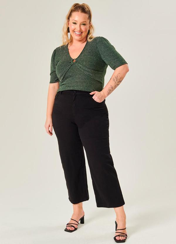 Lisamour - Calça Wide Leg Cropped em Sarja Preto