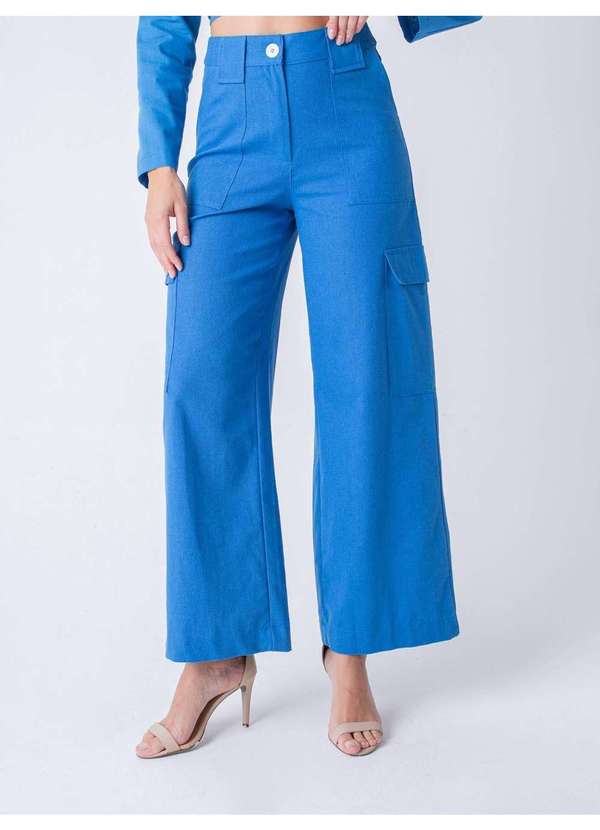 Calça estilo wide leg, em viscolinho. Possui cós médio com passantes largos. Bolsos frente e costas e bolsos cargos nas laterais. O fechamento da peça é por botão de massa e zíper. Peça chave para looks com funcionalidade e conforto. Combine com acessórios, blusa e scarpin, para um look urbano chic.
