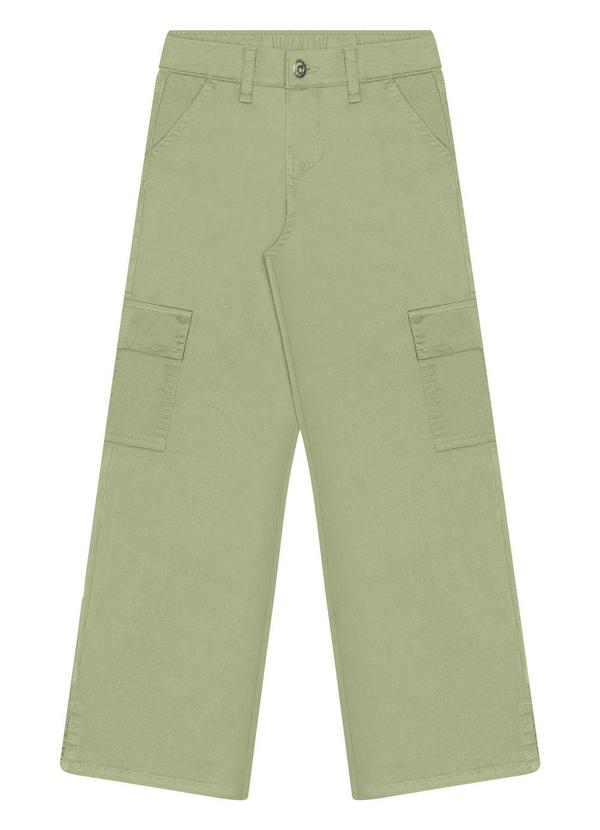 Alakazoo - Calça Wide Leg Menina com Bolso Cargo Verde