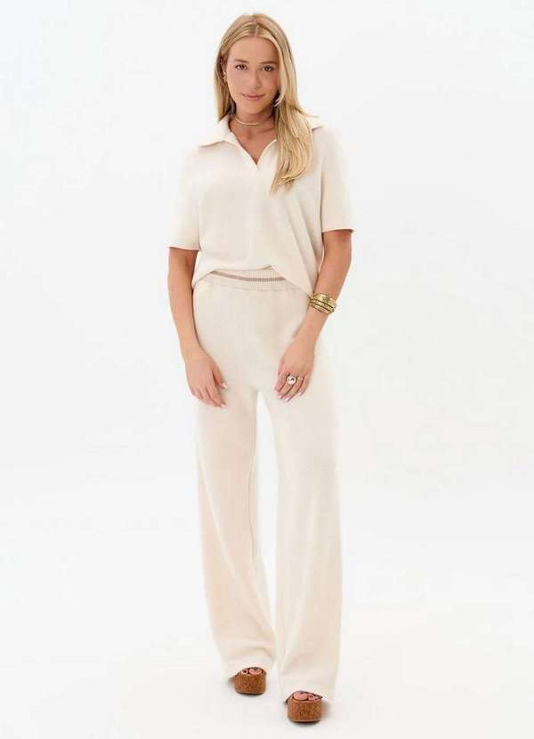 My Favorite - Calça Wide Leg Tricot Cintura Média A0001