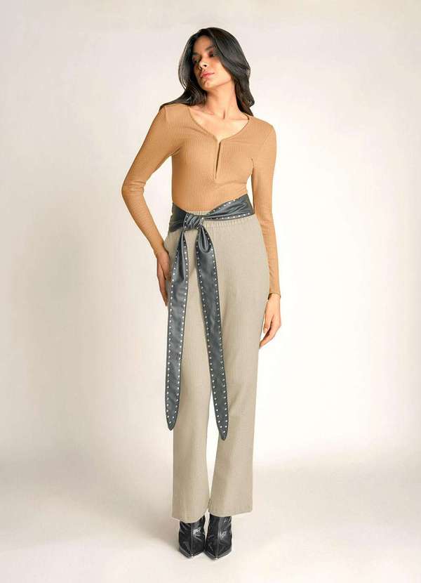 Zinco - Calca Zinco Reta Cós Elástico Bolso Lateral Bege Bege