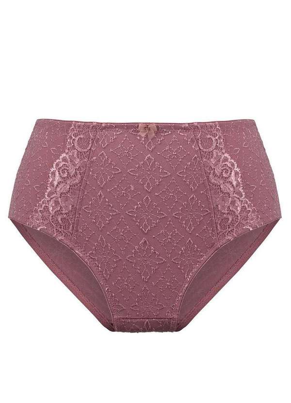 Características: Calcinha modelagem alta. Recorte de renda. Com cós elástico. Aplique de laço frontal . Composição: Corpo: 89% Poliamida e 11% elastano. Forro fundo: 100% Algodão.