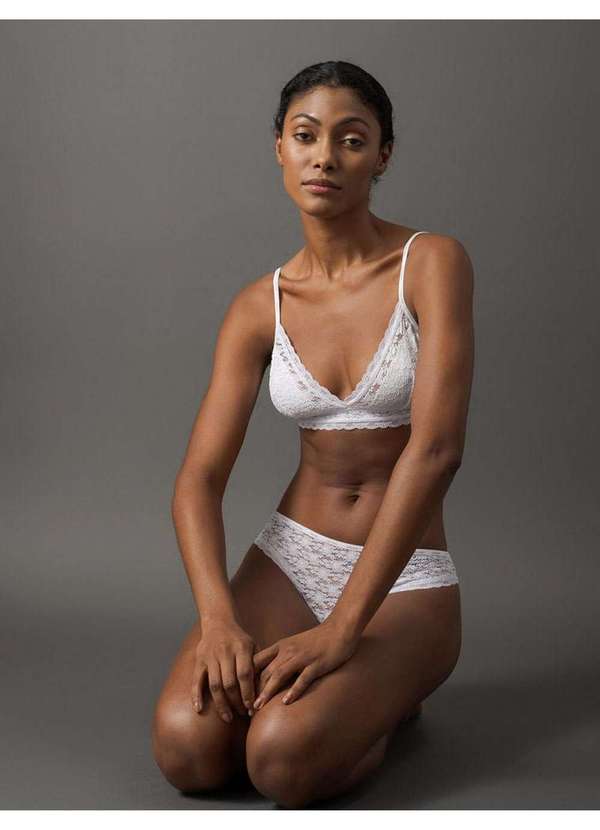 Calvin Klein Jeans - Calcinha Fio Dental Micrologo Lace Calvin Klein Underwear - Branc Branco