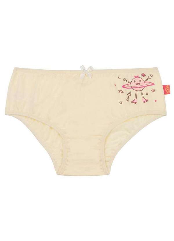 Características: Calcinha infantil básica Confeccionada em malha de algodão,antialérgica e transpirável Cintura e cavas das pernas com elástico suave e ajuste perfeito Estampa Planetinha em silk exclusivo na lateral da frente Cintura com laço de fita de cetim na cor da peça Fundo em tecido duplo Composição: 100% Algodão
