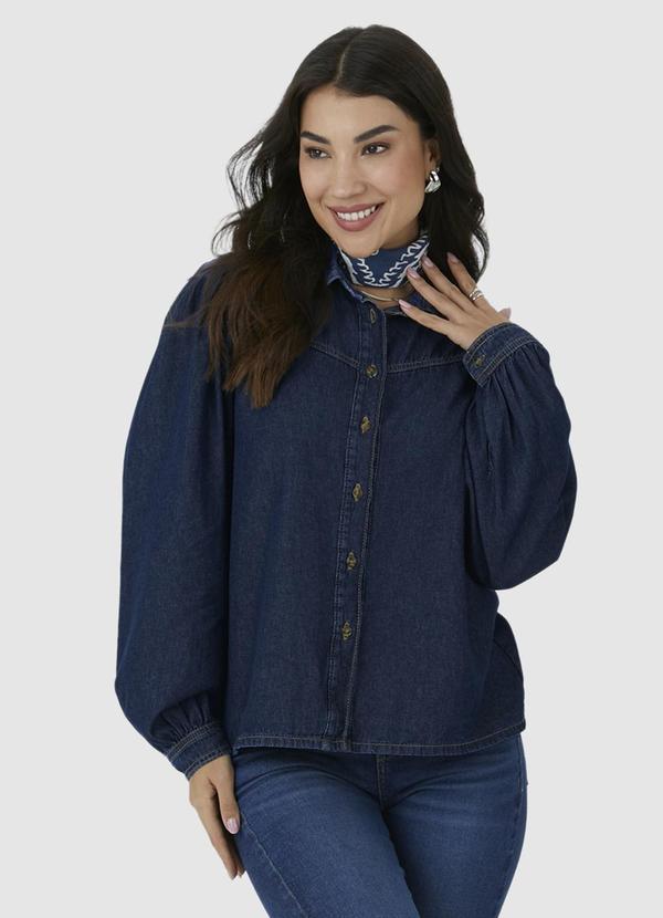 Malwee - Camisa Ampla Jeans com Pregas Azul