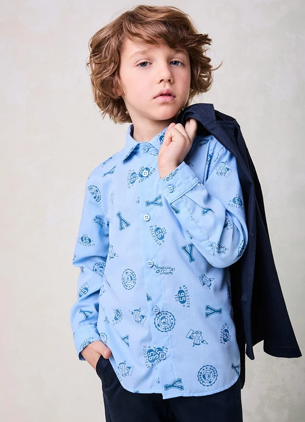 Youccie - Camisa Azul com Estampa de Ícones Azul