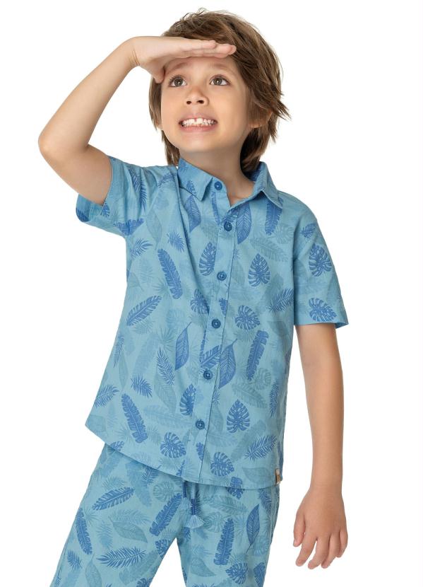 Malwee Kids - Camisa Azul Folhagem em Linho Menino