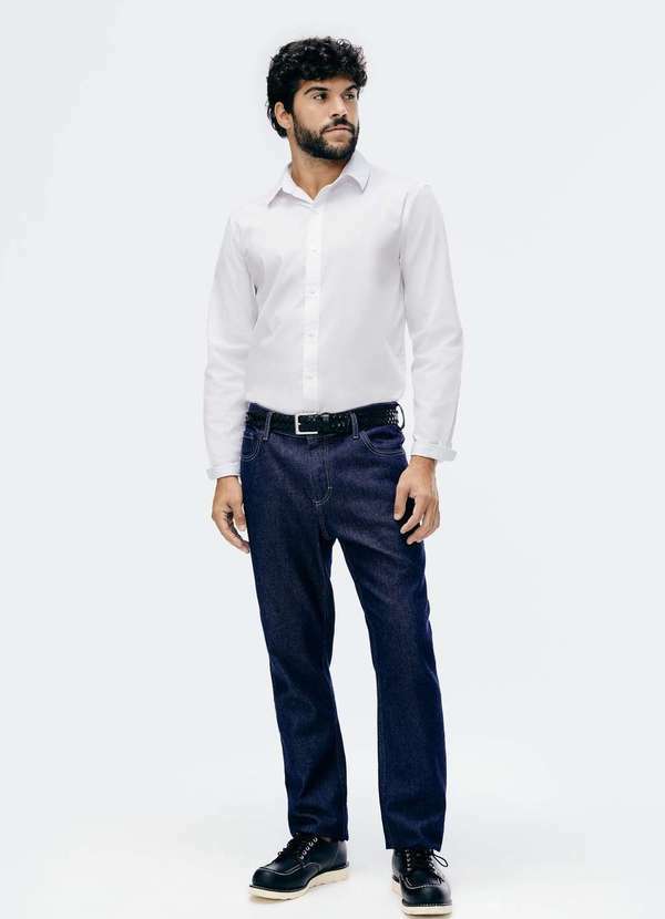 Hering - Camisa Basica Masculina Super Slim Manga Longa Branco