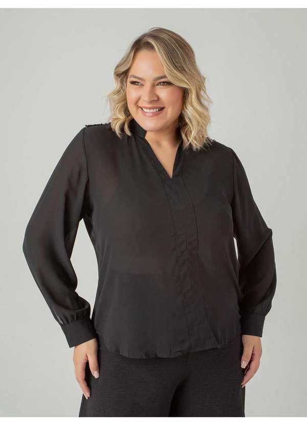 Susie Modas - Camisa Chiffon Detalhe Ombro Feminino Preto