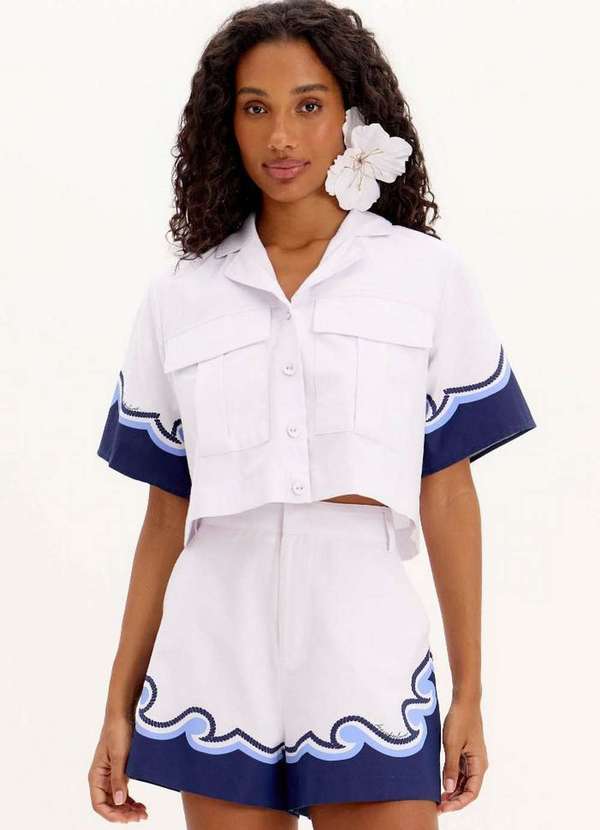Lança Perfume - Camisa Curta com Mangas Estampadas e Bolsos A2223