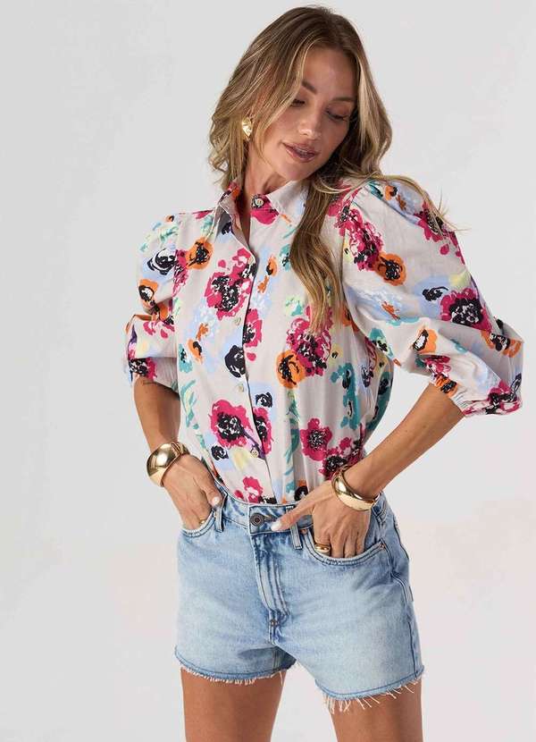 Laccord - Camisa de Tricoline Estampa Floral Estampado