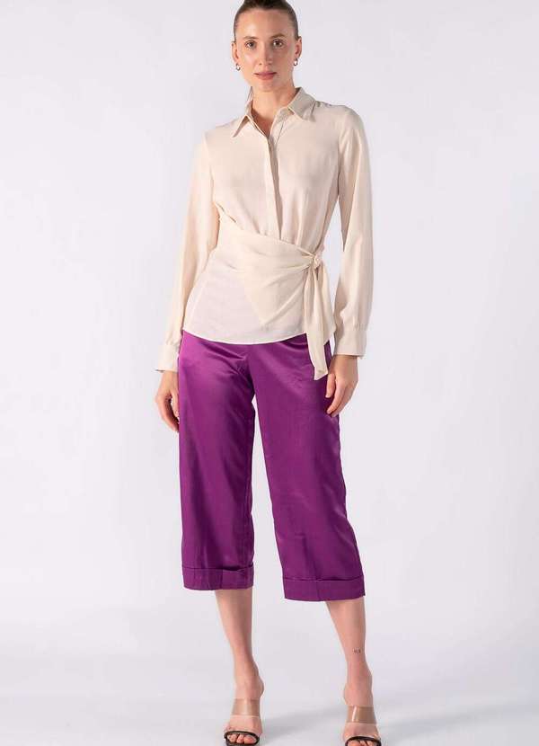Camisa em crepe manga longa com amarração Dica: Usar com pantalona e scarpin Composição:100%poliester Modelo usa:Tamanho P - Medidas 1,78 de altura | 55kg