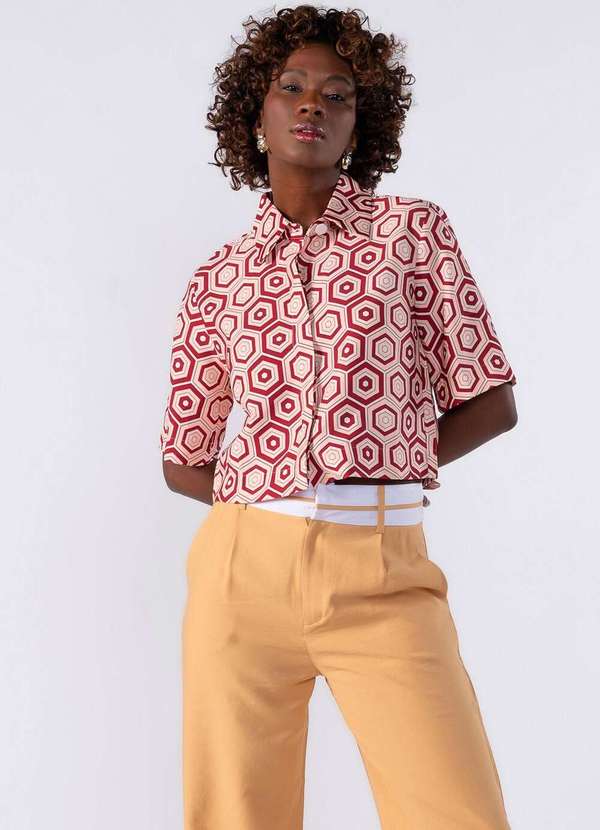 Camisa cropped estampada de manga curta Dica:Usar com saia midi jeans e tênis Composição:92%viscose 08%poliester Modelo usa:Tamanho P - Medidas 1,75 de altura | Peso: 59kg