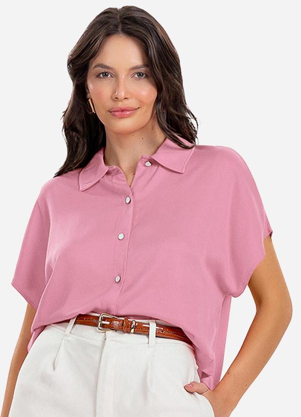 Rovitex - Camisa Feminina Botão de Viscose Rosa