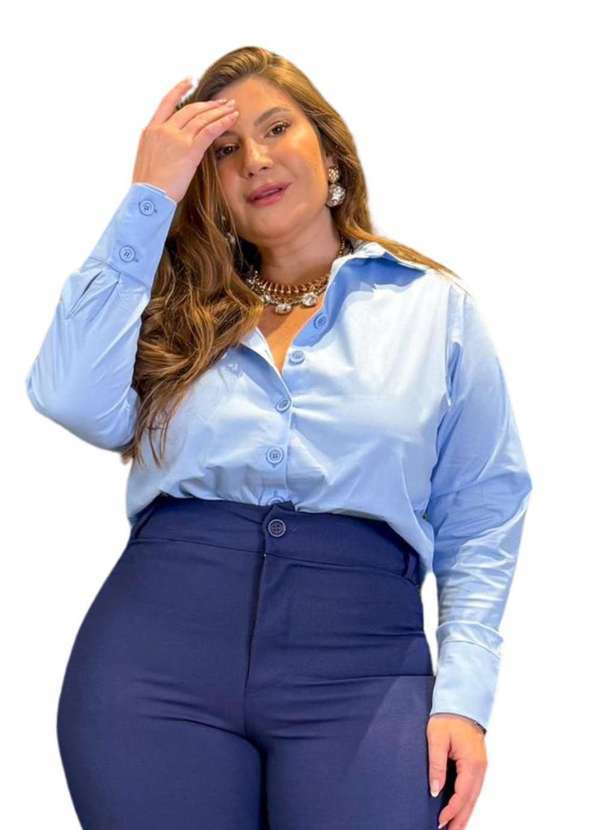 Predilects Plus - Camisa Feminina Plus Size em Tricoline Manga Longa Azul