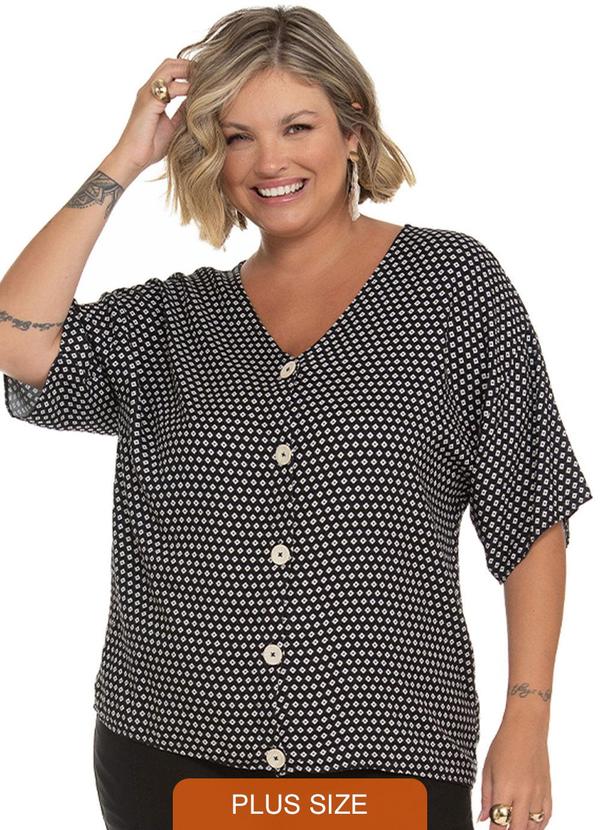 Secret Glam - Camisa Feminina Plus Size Estampada Preto