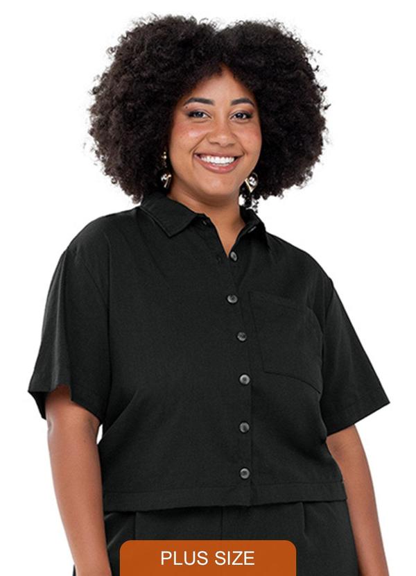 Rezzato - Camisa Lisa com Bolso Adulto Plus Size Preto