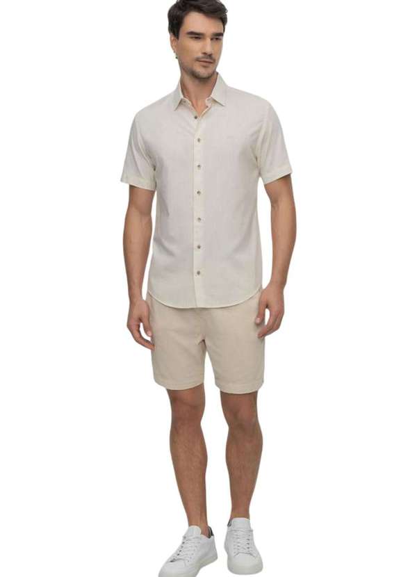 Hangar 33 - Camisa Manga Curta Hangar 33 Slim em Linho Bege Bege