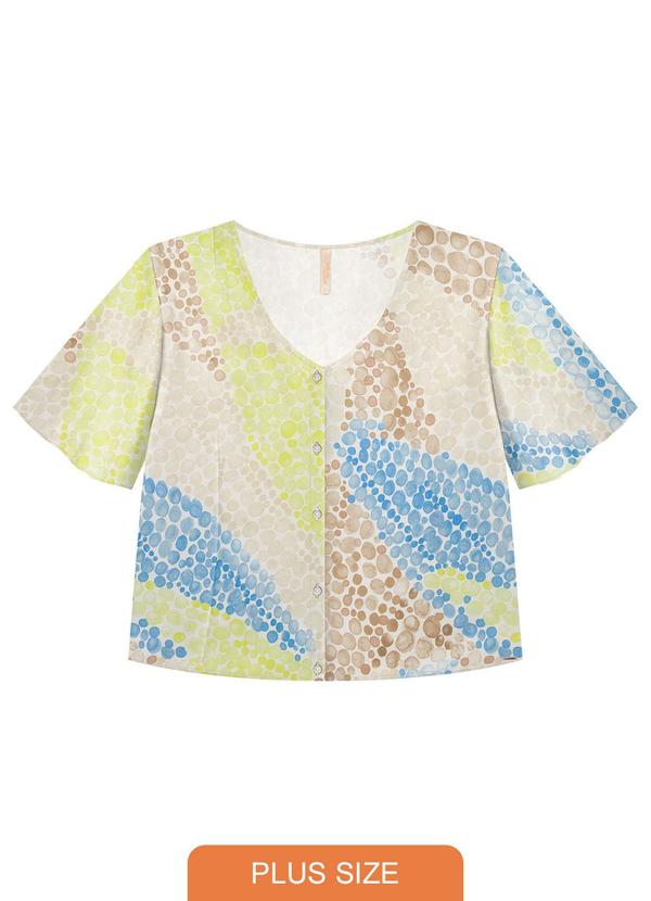 Lunender Mais Mulher - Camisa Manga Curta Plus Size Estampada Azul