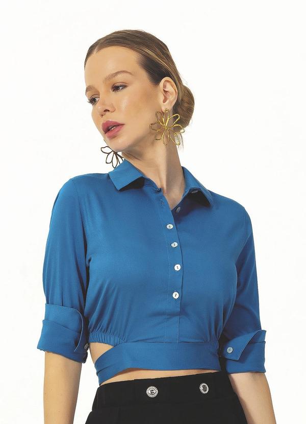 Gris - Camisa Manga Longa em Tecido Flex Azul