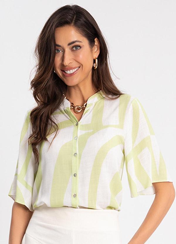 Lunender - Camisa Mangas Fluidas Gola Padre Viscose Verde