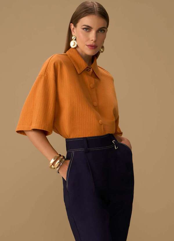 Eleve seu estilo com esta peça vibrante que combina a essência do Renascimento com a modernidade. A camisa com gola tradicional e manga curta em um deslumbrante tom laranja é ideal para momentos que exigem sofisticação. Feita com uma mistura de algodão e poliéster, oferece conforto e elegância, perfeita para ocasiões casuais ou eventos mais formais. Harmonize com calças de alfaiataria para um look refinado ou aposte em jeans para um visual mais descontraído. Complemente com um colar delicado ou brincos dourados para realçar sua presença marcante. A coleção Maria.Valentina é uma ode à mulher contemporânea, unindo arte e moda em peças que refletem confiança e autenticidade. Sinta-se poderosa e cheia de estilo com esta criação única.