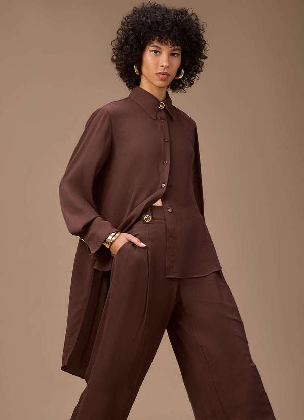 Maria.valentina - Camisa Maria.Valentina Solta Polo Manga Longa Padrão Marrom Marrom