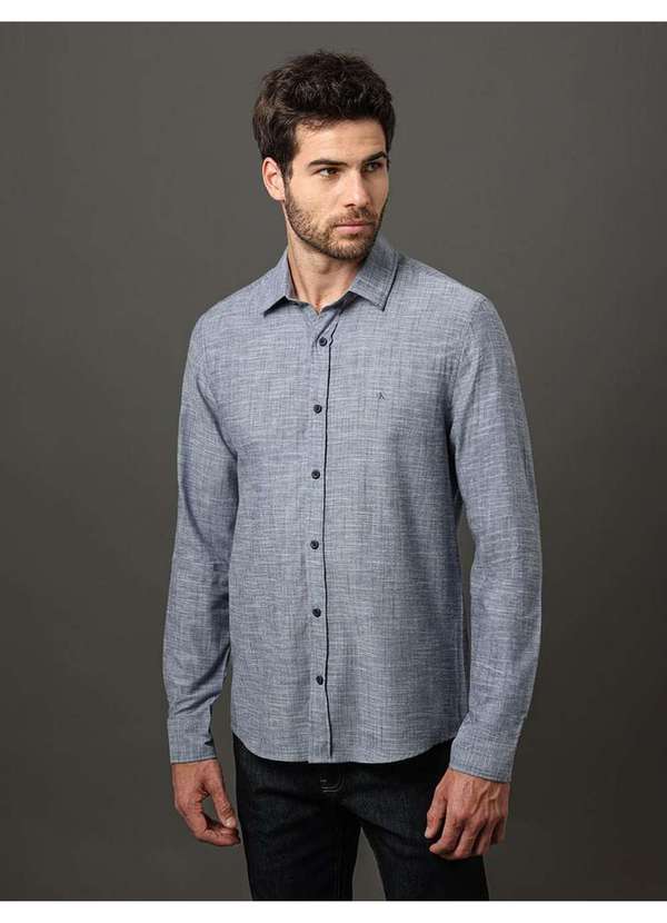 Calvin Klein Jeans - Camisa Masculina Algodão Flamê Calvin Klein Jeans - Marinho Azul