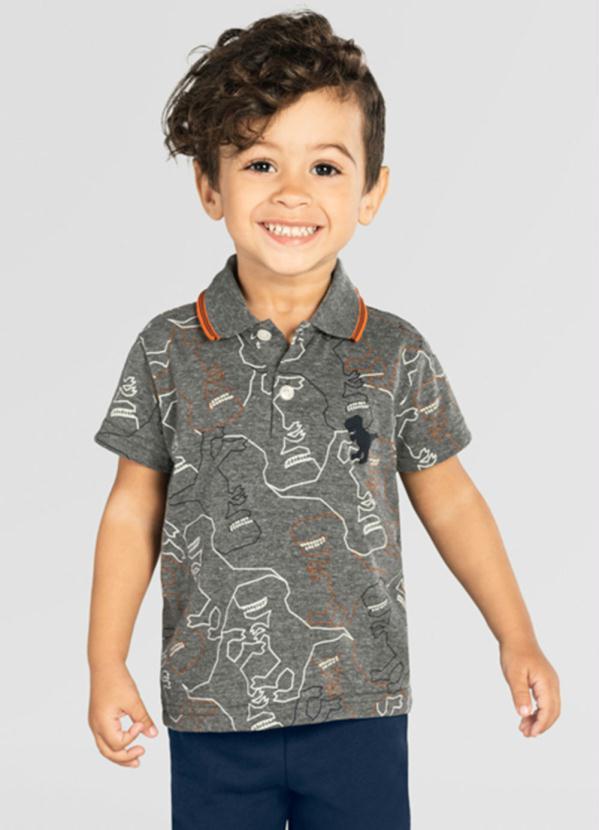 Brandili - Camisa Polo Infantil Menino Dinossauro Cinza