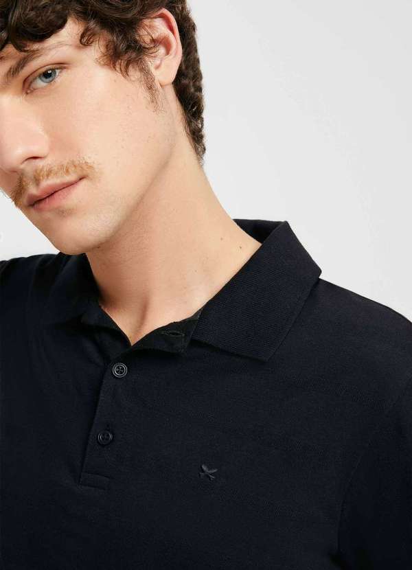 Hering - Camisa Polo Masculina Manga Curta com Bordado Preto