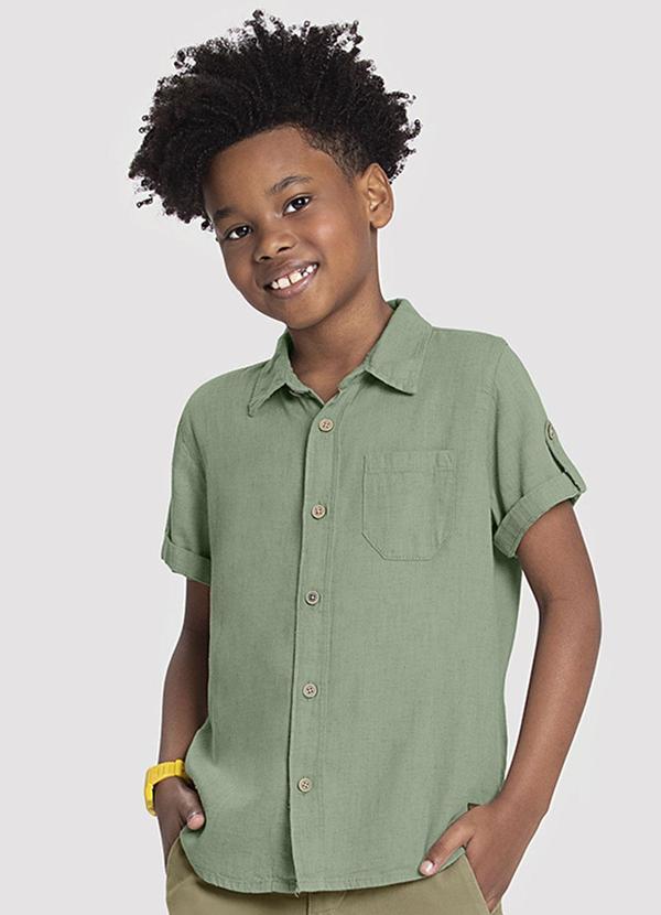 Alakazoo - Camisa Sarja Infantil Menino com Manga Curta Verde