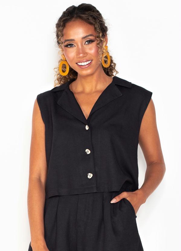 Hering - Camisa sem Manga de Botões Preto