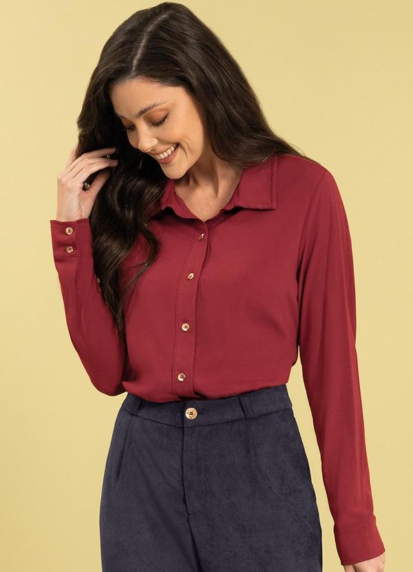 Cativa - Camisa Social Feminina de Manga Longa Vermelho