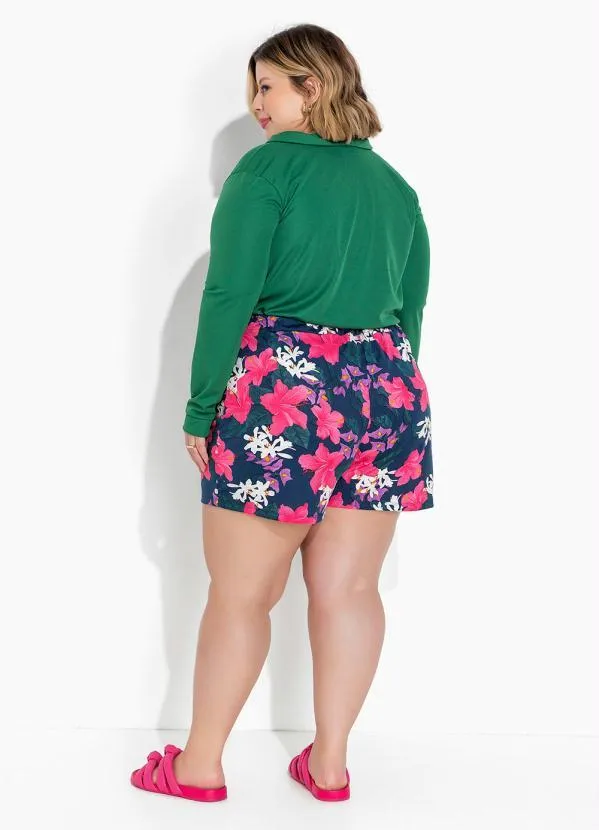 Marguerite - Camisa Verde Bandeira de Mangas Longas Plus Size