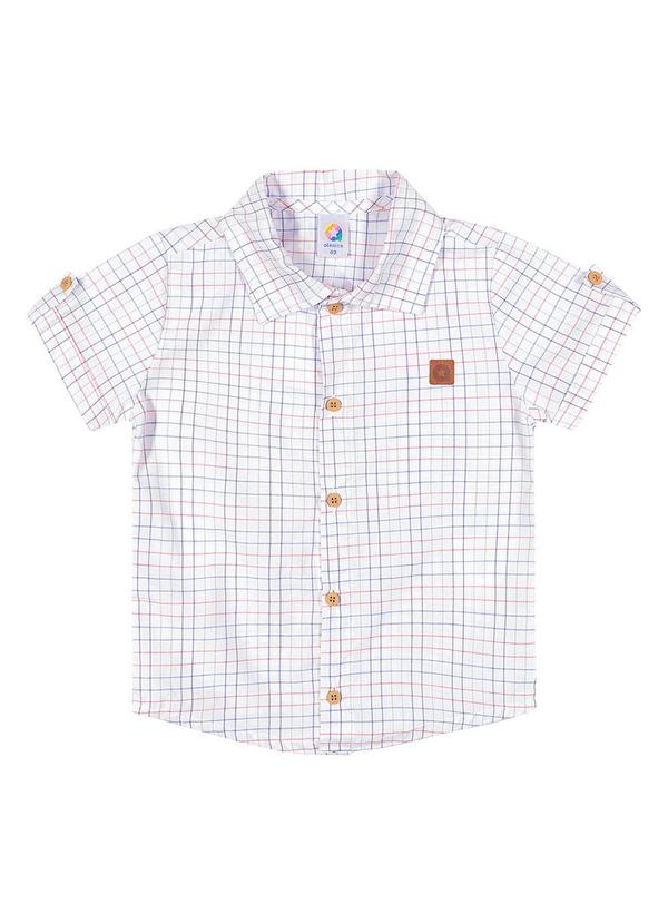 Alenice - Camisa Xadrez Manga Curta Menino Branco