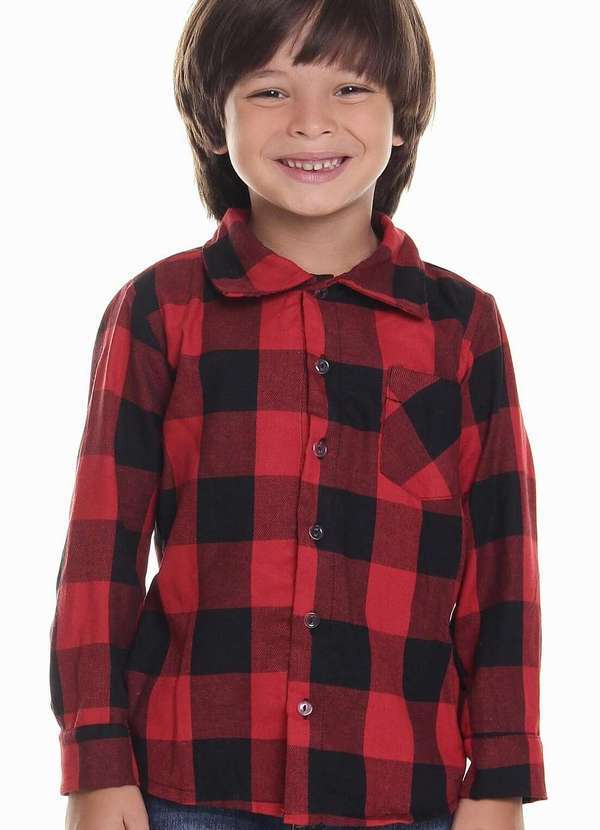 Muvilê - Camisa Xadrez Masculina de Flanela Vermelho Muvilê Vermelho