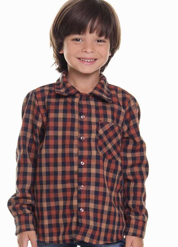 Muvilê - Camisa Xadrez Masculina Laranja de Flanela Junina Muvilê Laranja